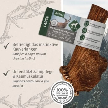 - 100 % Natur aus Abwurfstangen ohne Farb-, Aroma- und Konservierungsstoffe.