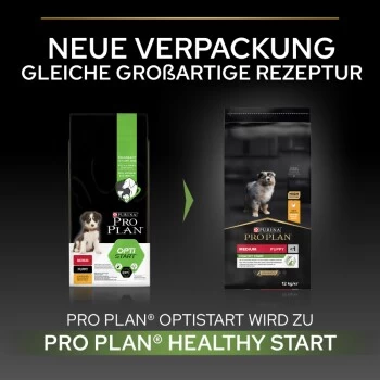 Die PURINA Tierärzte und Ernährungswissenschaftler haben PURINA PRO PLAN Puppy Healthy Start entwickelt, um diese Lücke zu schließen und deinem Welpen den bestmöglichen Start ins Leben zu ermöglichen. Unser ausgewogenes und vollwertiges Hundetrockenfutter wurde speziell auf die Bedürfnisse für Welpen mittelgroßer Rassen entworfen (auch geeignet für trächtige und säugende Hündinnen). Dabei hilft PURINA PRO PLAN Puppy Healthy Start, die natürlichen Abwehrkräfte deines Welpen zu stärken.