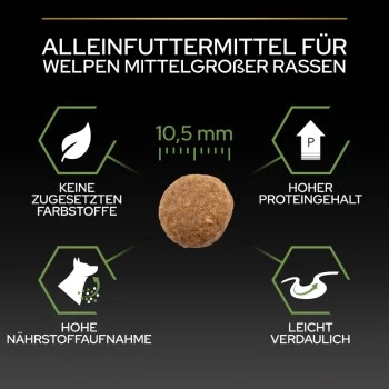 Alleinfuttermittel für Welpen mittelgroßer Rassen
