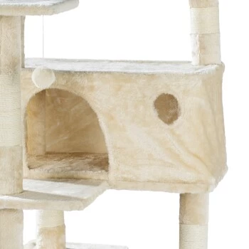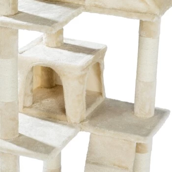 Wer mehreren Katzen ein Zuhause gibt, der benötigt einen kompakten und abwechslungsreichen Kratzbaum mit ausreichend Liegeflächen und Kratzmöglichkeiten. Der PETOLINA Katzenbaum Marley enthält eine praktische Aufstiegshilfe in Form einer Leiter und ist somit für Katzen jeden Alters geeignet. Die Liegeplatten und Höhlen sind mit kuscheligem Plüsch bezogen und bieten Platz für mehrere Katzen. Die gemütliche Kuschelmulde in der obersten Etage ist ein idealer Rückzugsort, während ausreichend Kratzmöglichkeiten die natürliche Krallenpflege unterstützen. Die Lieferung erfolgt zerlegt inklusive Aufbauanleitung.