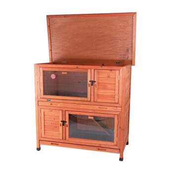 Dieser zweistöckige natura Kleintierstall mit Wärmedämmung besteht aus lasiertem Kieferholz bietet zwei verschiedene Nutzungsmöglichkeiten: